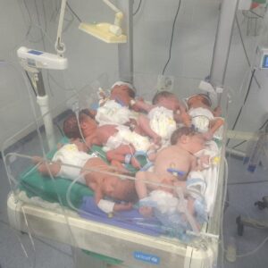 Dr. Mohammed Abu Salmiya, director of Al-Shifa Medical Complex in Gaza, described the dire conditions facing premature infants in the city’s neonatal units, where six babies are being kept in a single incubator.