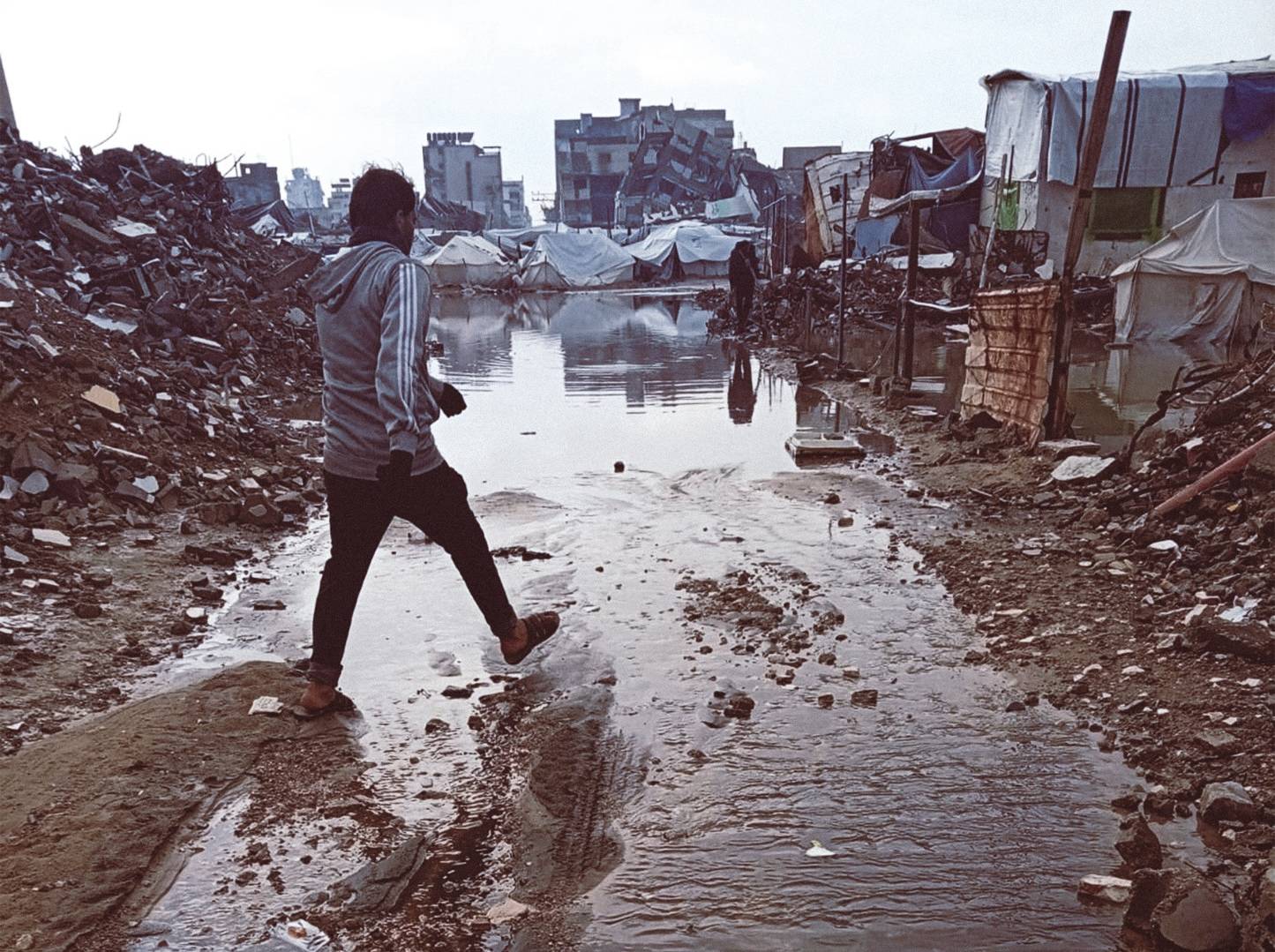 Ahmed Totah: My family and I are living in a tent in an area called al-Zawayda. The tent is broken and open on all sides, exposed to the wind. The conditions now in the winter are harsh: The tents flood, and water gets inside. You can’t find mattresses to sleep on, you can’t find bathrooms.
