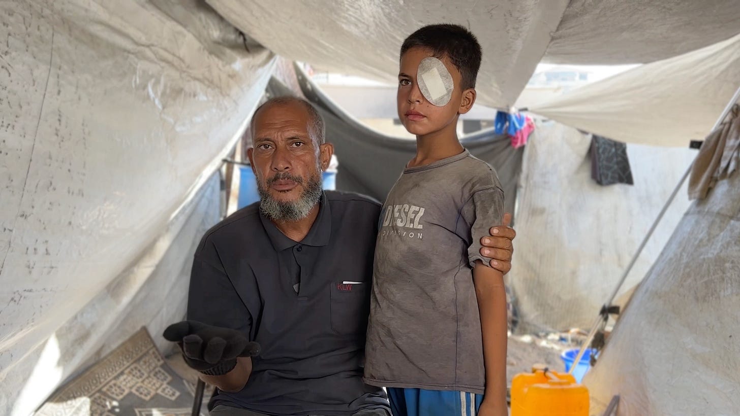 In June 2024, Israel bombed the tent camp where the Abu Khater family was taking shelter. Abu Khater was injured, one of his other sons was killed, and his youngest son was wounded with shrapnel in the eye. “One died from a bombing. Another died from hunger. Maybe another one will die from scabies, or disease, or the sewage, or from lack of hygiene. You go to sleep terrified, you don’t know where death is going to come from,” Abu Khater said. “There are hundreds, thousands going through the same thing. It’s repeating daily.”