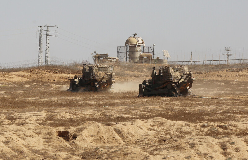 Suddenly, the farmers noticed that Israeli soldiers were driving three bulldozers toward them.