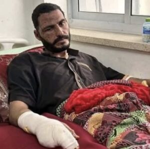 Israeli warplanes assassinated journalist Hassan Aslih early Tuesday in his hospital room at Nasser Medical Complex in Khan Younis, Gaza. (social media)