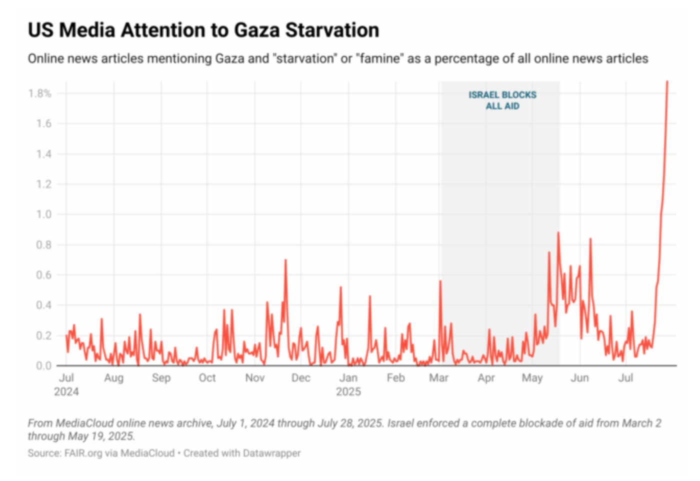 Major US media, likewise, bear a share of responsibility for the hunger-related deaths in Gaza. The conditions of famine have been out in the open for well over a year, and yet it was considered barely newsworthy in US news media.